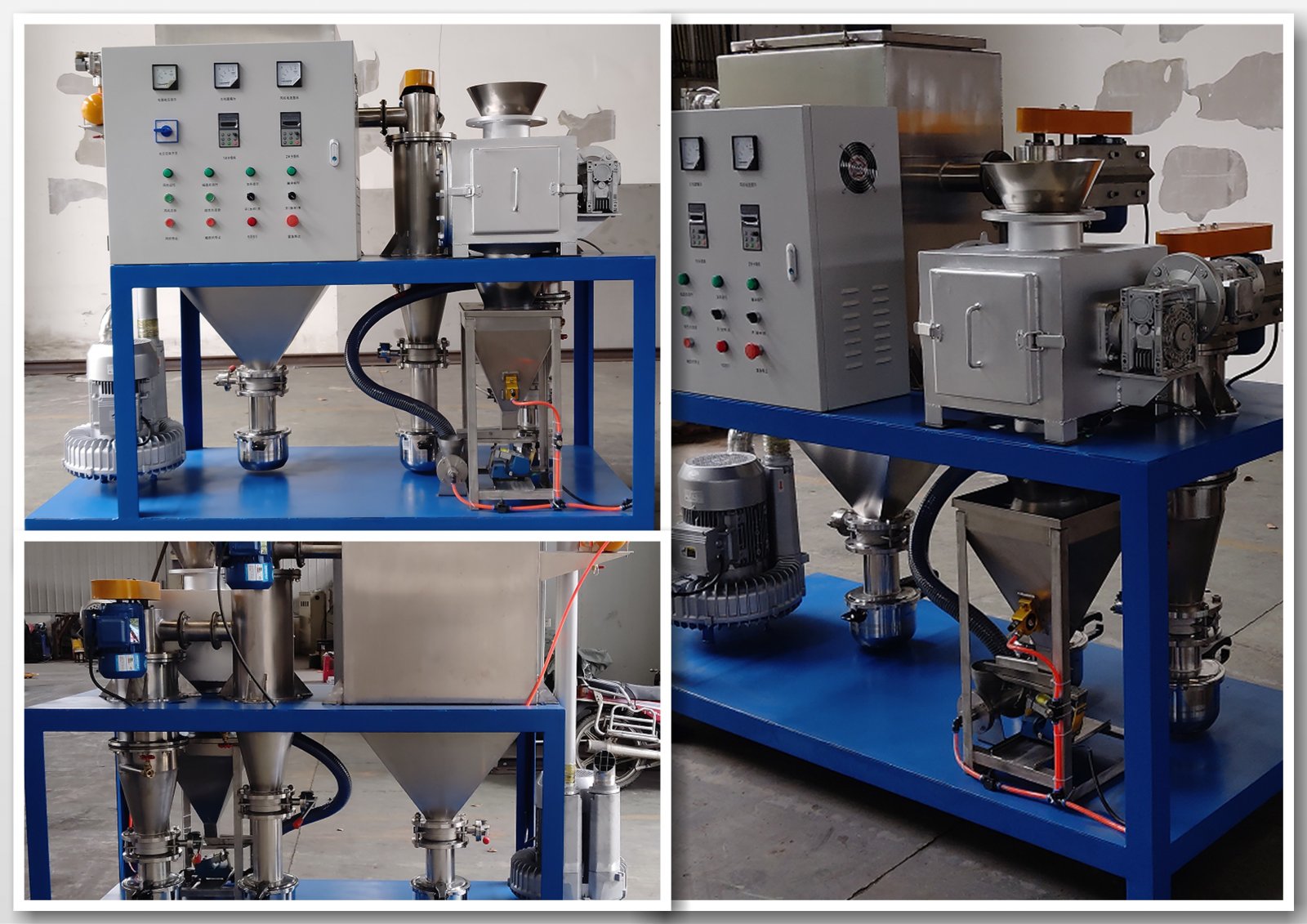 烈日炎炎,热火朝天!顶着38度的酷暑,经过紧张的生产制造和安装调试,一条全自动的锂电负极材料破碎球化生产线投入使用。 该生产线全部采用不锈钢制作,由磨粉机、球化设备以及气流输送系统三大组件组成。全系统采用PLC控制,一键启停,一点投入原料,一点收集破碎球化后的粒度分布合格、颗粒形貌合格、振实密度和比表面积合格的成品,其间的加料、破碎分级、球化投料、球化整形、半成品及成品输送等
